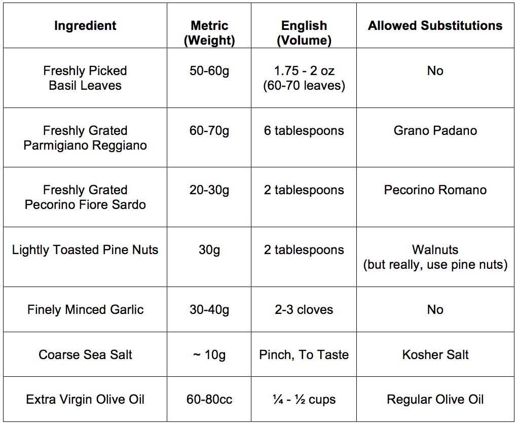 That said, some of the authentic ingredients are going to be hard to find, and the Pesto Police do allow for a few substitutions (more on that later). Do keep in mind, though, that the more substitutions you make the more it’s going to affect your final product.