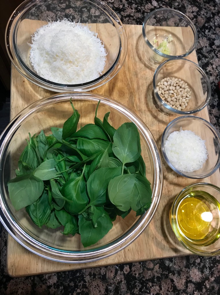 First of all, it is of paramount importance that you use the highest quality, freshest, most authentic ingredients you can find. If you are going to go to the trouble of making this (which isn’t actually that much trouble), you owe it to yourself, to the recipe, and to the Pesto Police to do the best you can do. The goal here isn’t good pesto, or even great pesto; the goal here is mind-altering pesto.