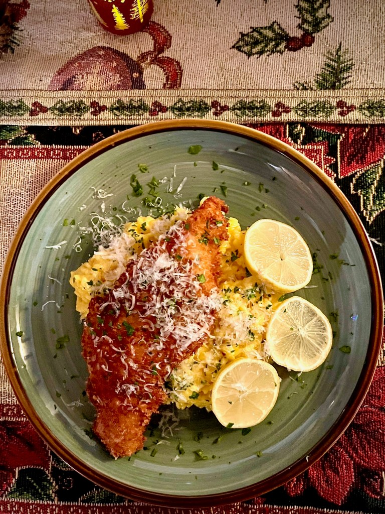 2 thoughts on “Crunchy Chicken Cutlets with Saffron Risotto”