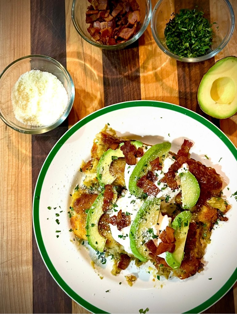 In case you haven’t figured it out by now, green chili and bacon are one of those things that go together like peanut butter and jelly, or gravy and mashed potatoes – they’re just meant for each other (see “Hatch Chile Bacon Mac & Cheese“).