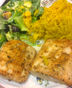Grilled Mahi Mahi with Rice Pilaf and Summer Greens